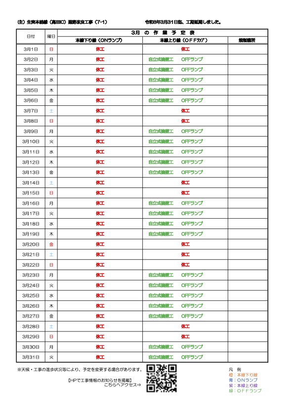 高田IC 3月の作業予定について